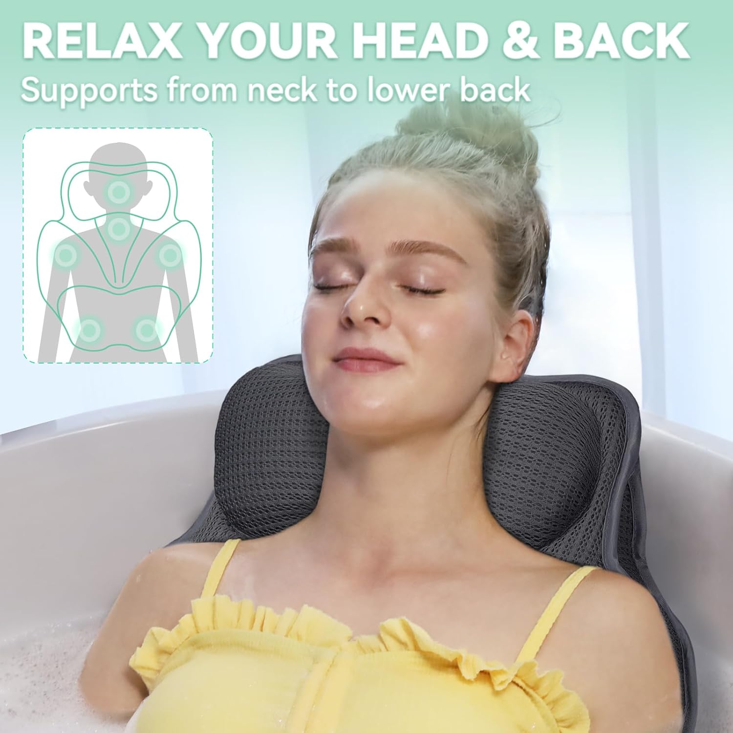 Bath Pillows for Tub - Luxury Bathtub Pillow Neck, Head, Back Support, Soft 4D Mesh Fabric and Non-Slip Suction Cups & Quick Dry, Comfort Fits All Tubs, Relaxation Spa Gift, Grey