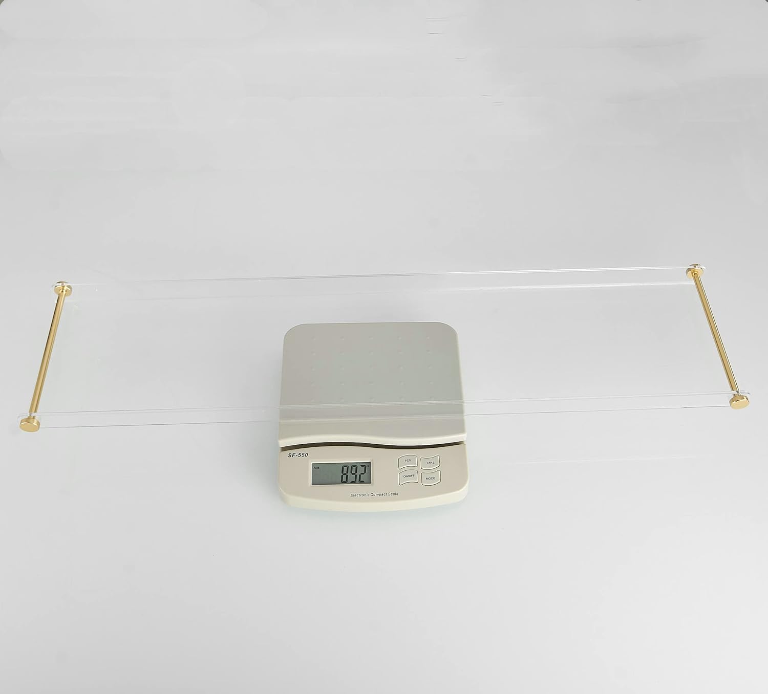 Bathtub Tray Clear Caddy Rack: Acrylic Tub Tray Shelf with Gold Rails to Hold Book Phone Candle Wine - Waterproof Bathtub Accessories, Luxury Gifts for Women