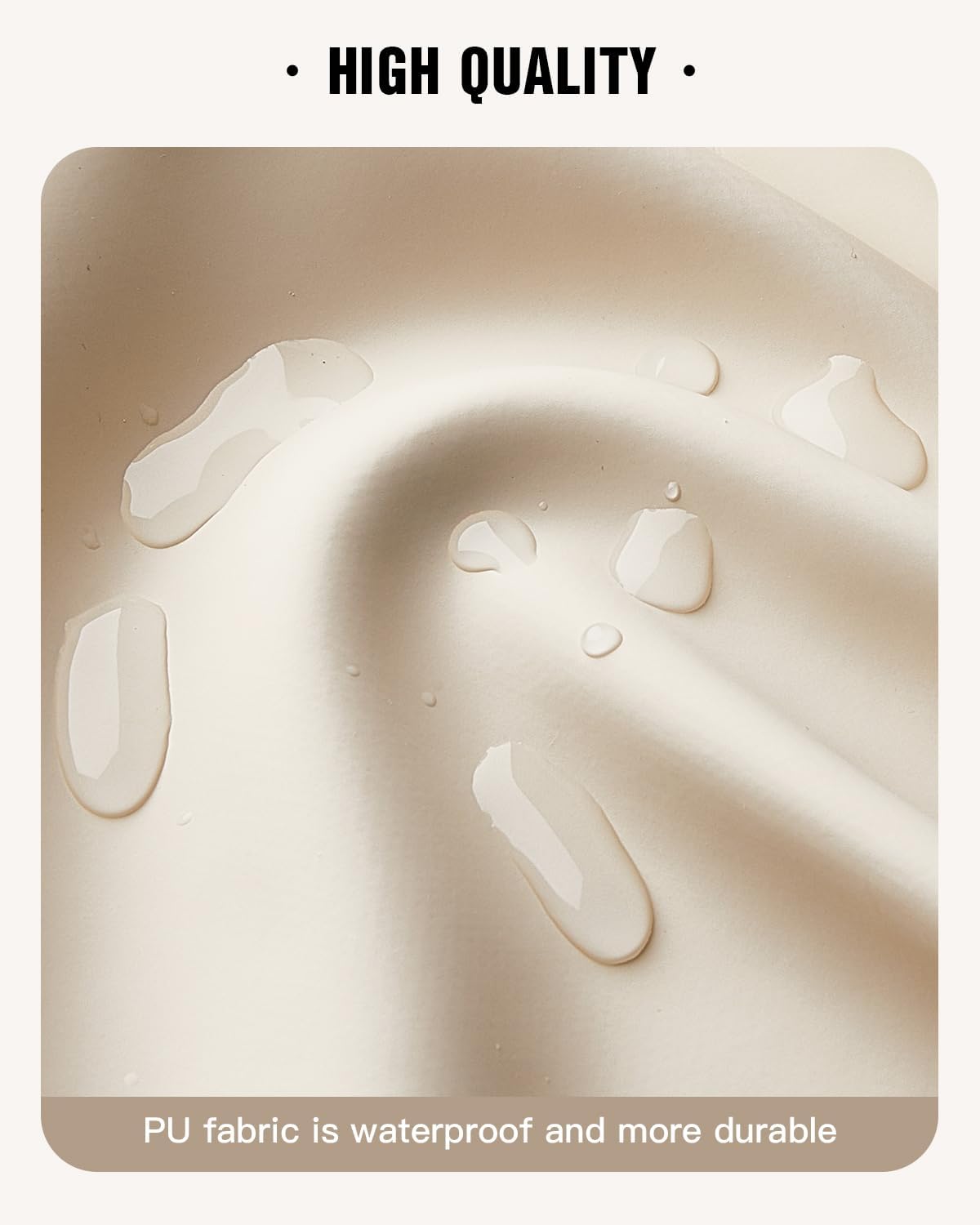 EACHY Toiletry Bag with Hanging Hook, Travel Makeup Bag PU Leather Cosmetic Bags for Women Make Up Organizer with 4 Compartments Waterproof Full-Size Portable Travel Essentials (Beige)