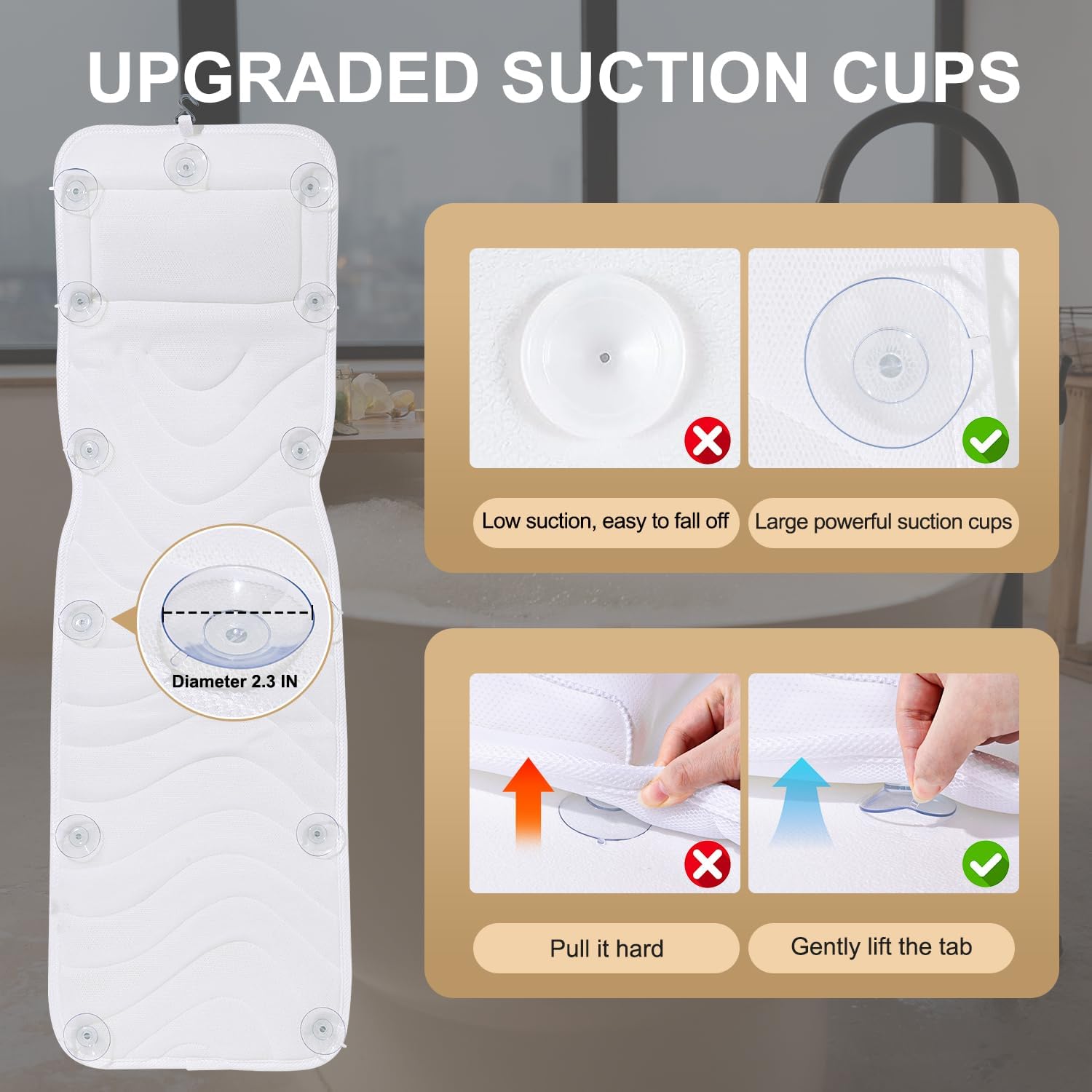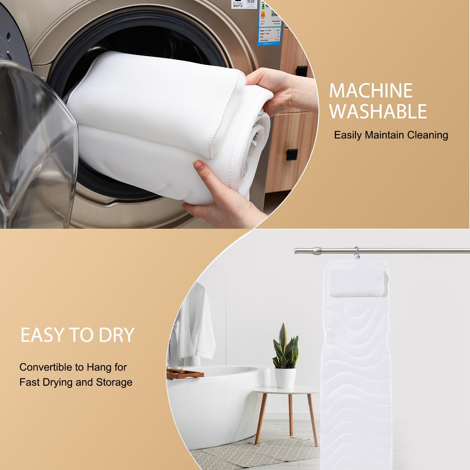 Full Body Bath Pillow for Bathtub, Non-Slip Bath Pillows for Tub, Spa Bathtub Pillow Cushion for Headrest Neck Shoulder and Back Rest Support,Relaxation Spa Accessories-50 x 15" (White)