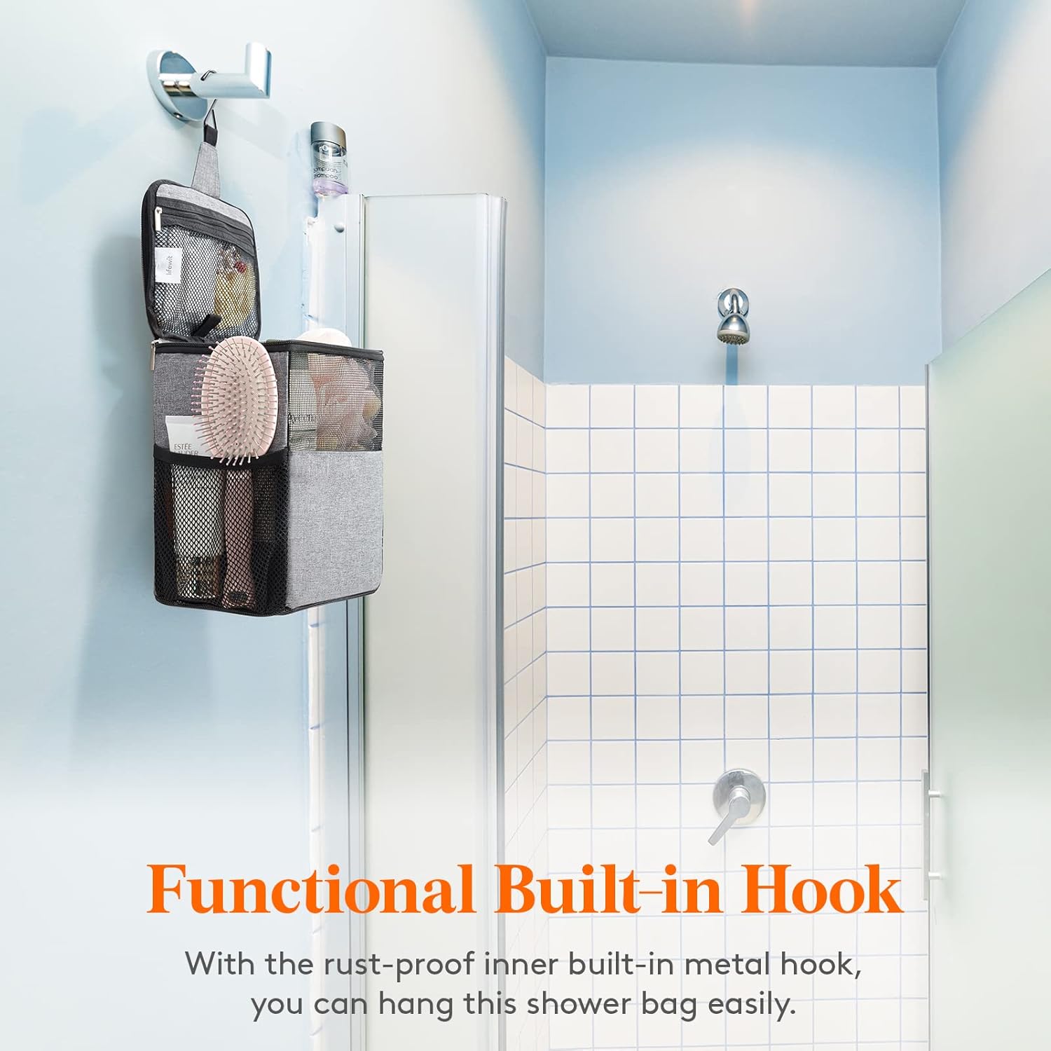 The breathable mesh allows water to drain out of the shower bag. Simply hang it for quick drying.