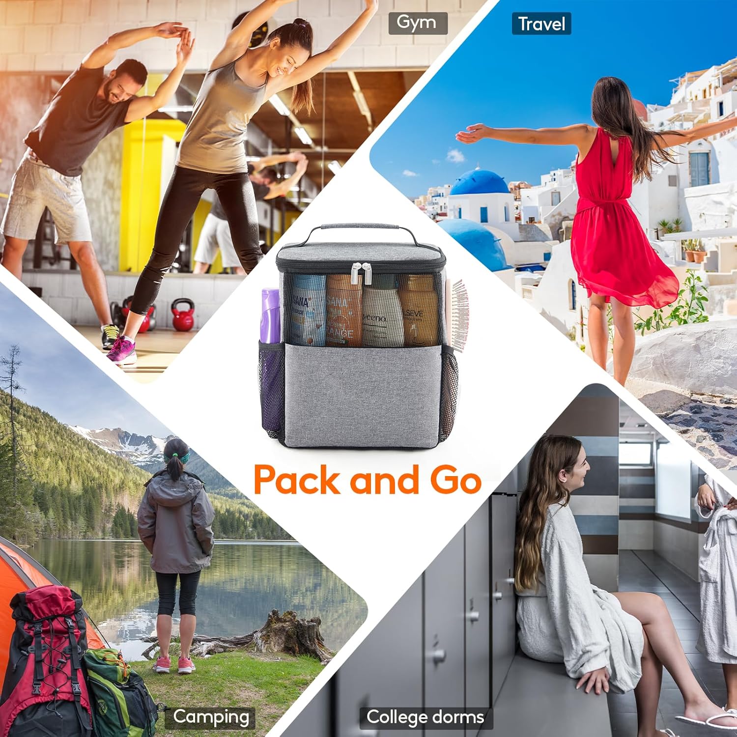 Take all of your shower essentials on the go, carry full-sized shampoo, conditioner, body soap, toothpaste, tooth brushes, and anything else you may need for the whole family. It is perfect for college dorm, travel, camping, gym, business trip, visit family, and so much more!