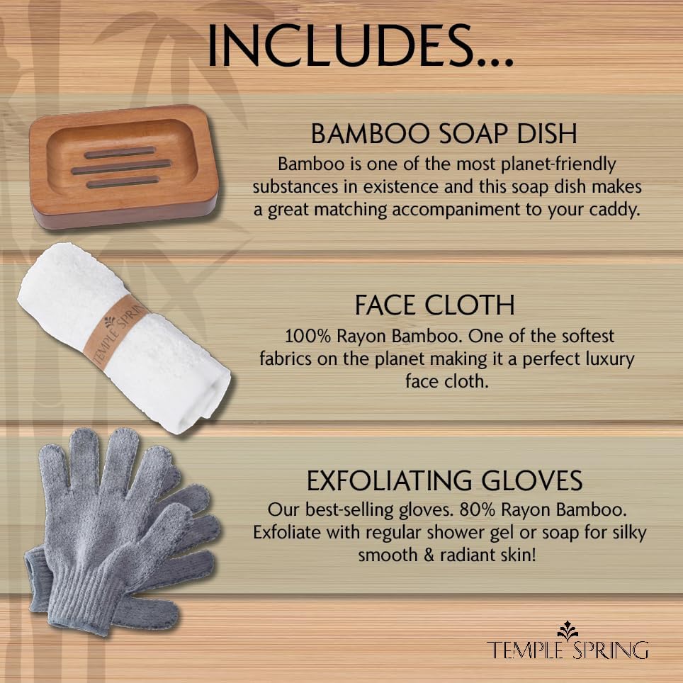 ALSO INCLUDES: Bamboo Facecloth, our best-selling Bamboo Exfoliating Gloves and a solid Bamboo Soap Dish.